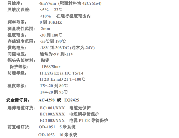 B&K VIBRO德国申克 电涡流传感器2mm量程范围,放爆防腐蚀传感器